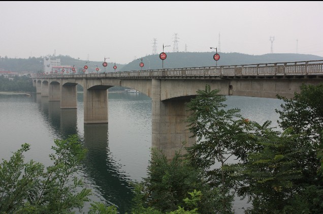 丹江口市二橋:結(jié)構(gòu)型式為(88 2*150 88)m預應力變截面連續(xù)箱橋,深水墩最大入水深度40m,居全國同類深水墩大橋之最。2005年建成。