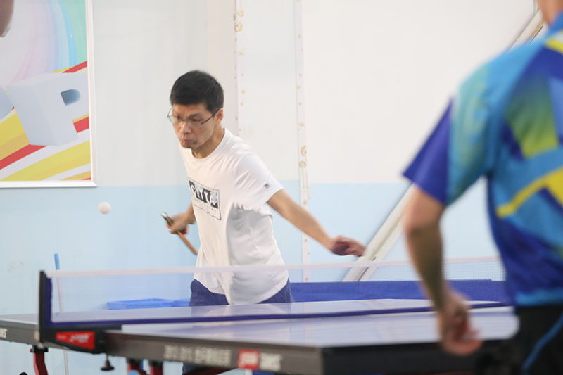 與此同時,運(yùn)動館內(nèi)羽毛球和乒乓球正如火如荼的進(jìn)行中。場館內(nèi)人潮涌動,各類賽制編排有序,甚是好看。