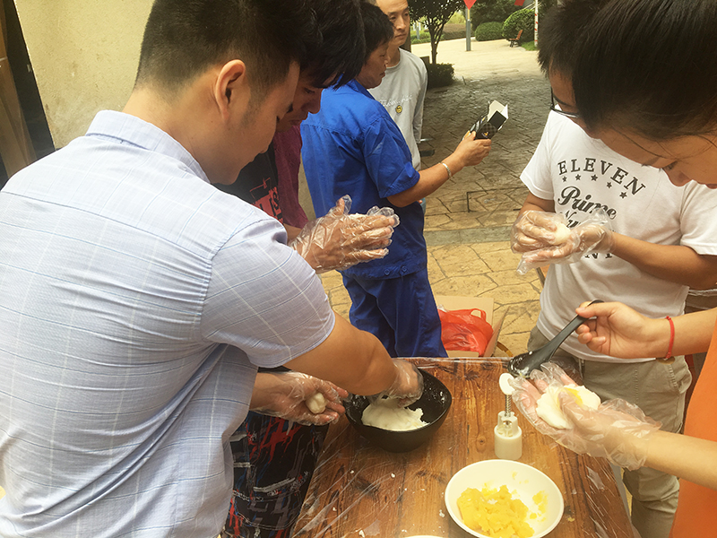 品嘗月餅也是中秋節(jié)的習(xí)俗之一,如果能品嘗自己親手制作的月餅,這個中秋節(jié)肯定更加難忘。活動第二項(xiàng)就是制作冰皮月餅,大家一邊自己動手和冰皮、包餡、壓花定型,一邊相互交流著關(guān)于中秋和月餅的故事。看似簡單的制作過程,要做出漂亮的月餅也讓大家費(fèi)了不少心思。有些止不住饞的小伙伴,還沒等做完就迫不及待的嘗鮮了,也有些舍不得吃的,說要帶回家與家人分享。