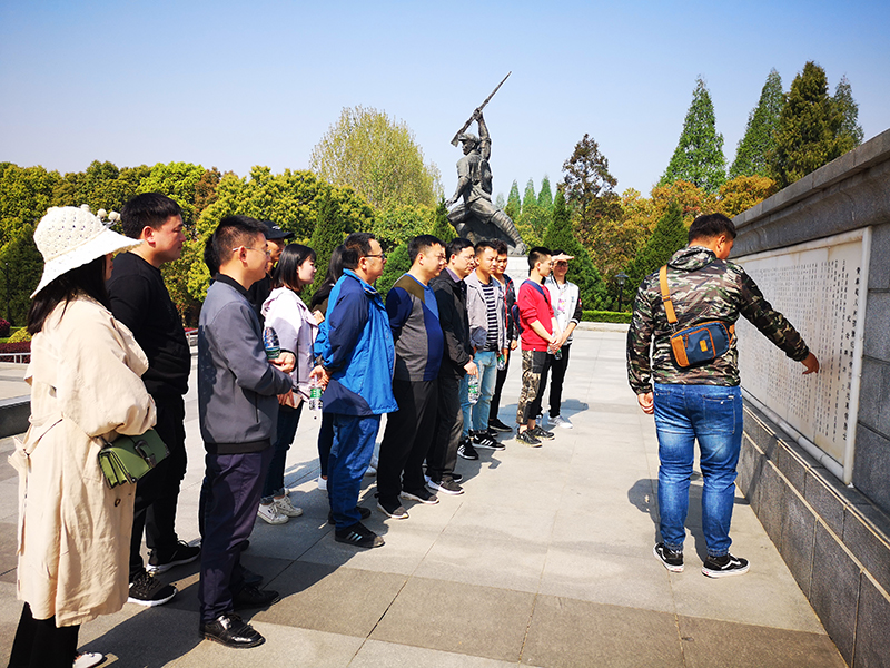 7日上午,項目部一行二十余人懷著無比崇敬的心情來到教育活動的第一站——黃麻起義和鄂豫皖蘇區(qū)革命烈士陵園。邁過大門,穿過一片林蔭大道,來到巍然聳立的烈士紀念碑前,大家瞻仰先烈,認真閱讀碑文,感受革命先驅(qū)為家、為國的大無畏犧牲精神。“小小黃安,人人好漢。銅鑼一響,四十八萬。男將打仗,女將送飯”,紀念碑背面這首簡單的童謠更是敲擊著我們的內(nèi)心:是無數(shù)的烈士用他們的生命和鮮血換來我們今天的幸福生活,我們還有什么理由不珍惜?!