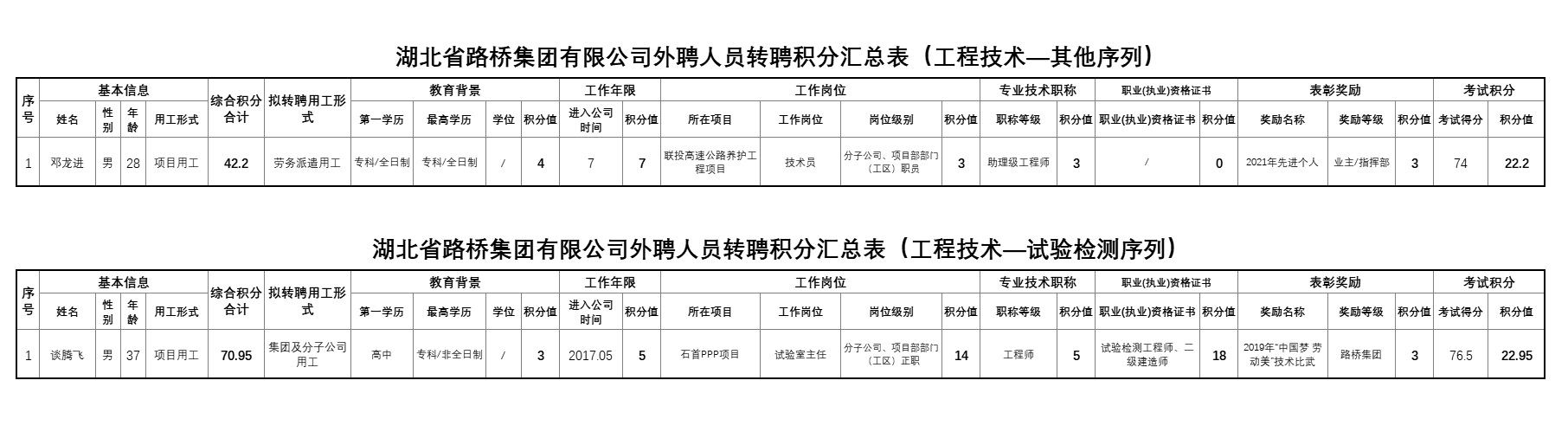 湖北省路橋集團(tuán)有限公司2022年擬轉(zhuǎn)聘人員公示