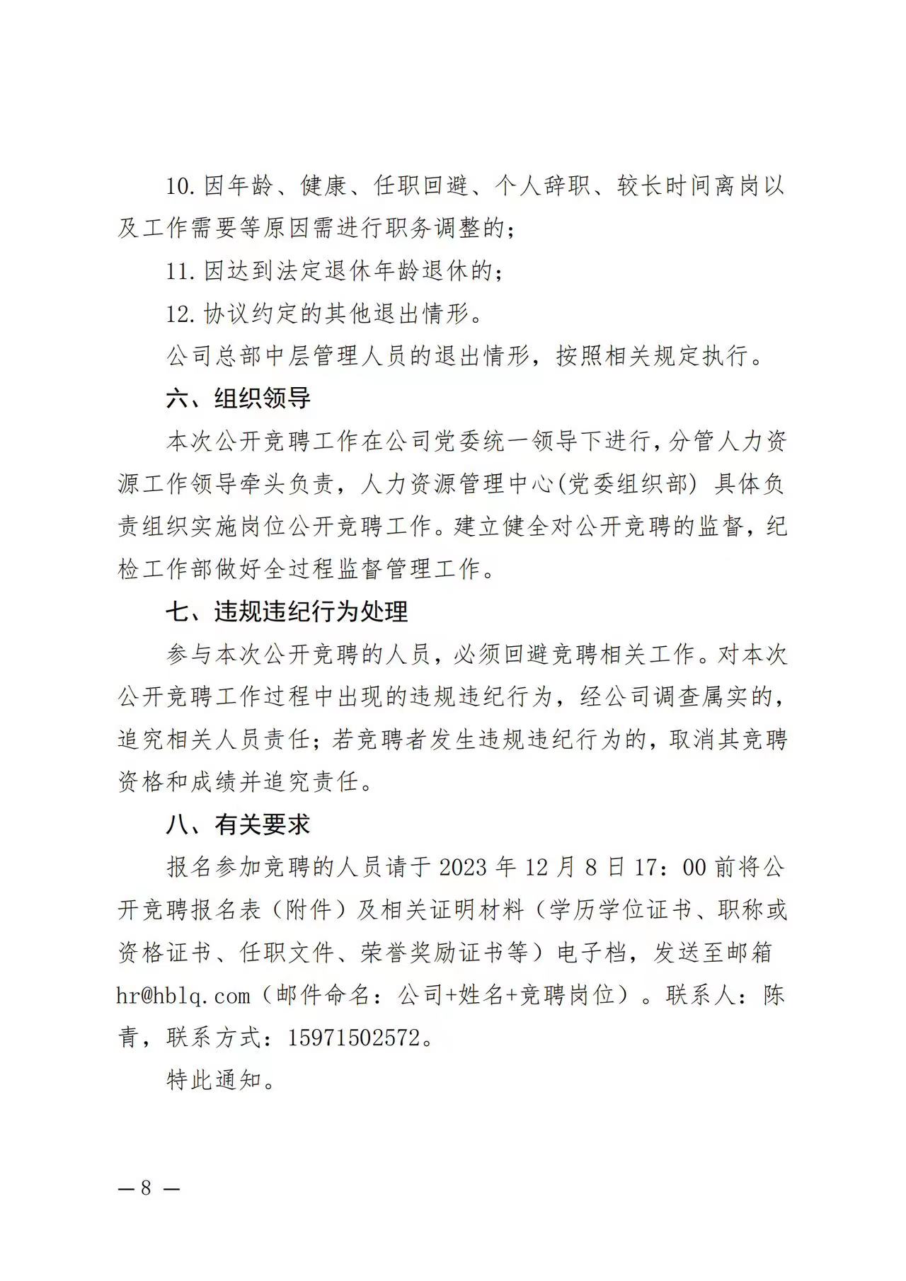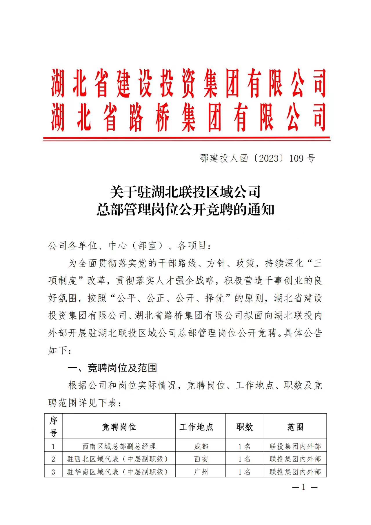 關于駐湖北聯投區(qū)域公司總部管理崗位公開競聘的通知