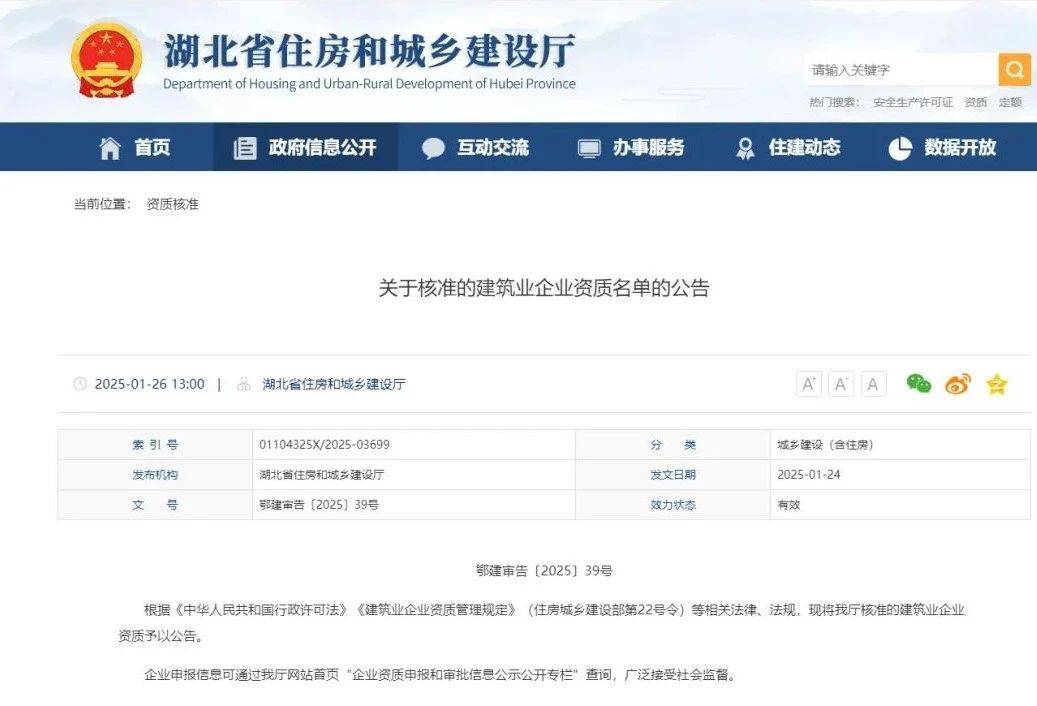 近日,經(jīng)湖北省住房和城鄉(xiāng)建設(shè)廳核準(zhǔn)審批,湖北省路橋建設(shè)工程有限公司成功取得水利水電工程施工總承包貳級資質(zhì)。這一成果有效完善了公司資質(zhì)體系,不僅是對公司在水利水電建設(shè)領(lǐng)域?qū)I(yè)實力和技術(shù)水平的權(quán)威認(rèn)可,更為公司在該領(lǐng)域的市場準(zhǔn)入提供了堅實的基礎(chǔ)支撐,標(biāo)志著湖北省路橋建設(shè)工程有限公司可獨(dú)立承接水利水電工程。