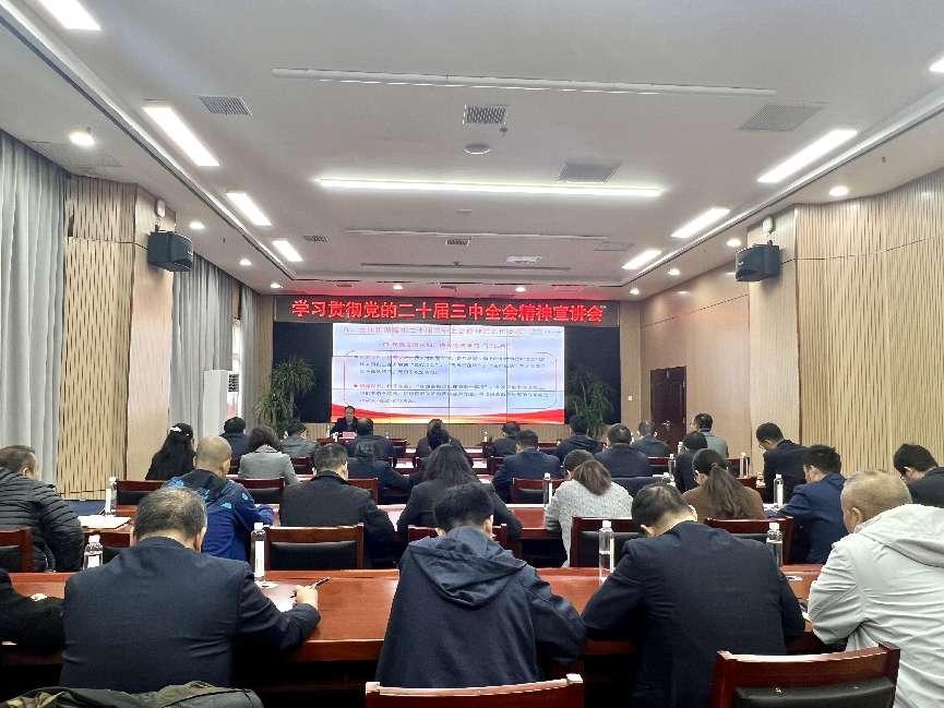為深入學(xué)習(xí)貫徹黨的二十屆三中全會(huì)精神,11月20日,湖北路橋黨委委員、副總經(jīng)理、總工程師朱紅明對(duì)分管板塊公司開(kāi)展黨的二十屆三中全會(huì)精神專題宣講。