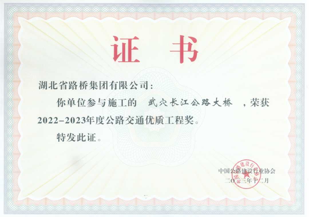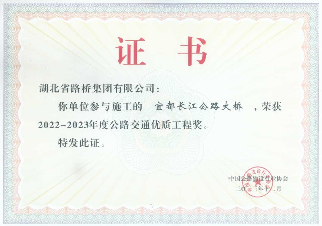 此外,湖北路橋一直致力于推動(dòng)公路建設(shè)行業(yè)進(jìn)步,并以積極開放的姿態(tài),深度參與行業(yè)協(xié)會(huì)各項(xiàng)工作。在中國(guó)公路建設(shè)行業(yè)協(xié)會(huì)的大力支持和指導(dǎo)下,湖北路橋憑借深厚的技術(shù)積累、不懈的創(chuàng)新精神以及對(duì)工程質(zhì)量的嚴(yán)格把控,取得了令人矚目的成績(jī)。15項(xiàng)工法在中國(guó)公路建設(shè)行業(yè)協(xié)會(huì)評(píng)為2024年度公路工程工法,宜都長(zhǎng)江公路大橋、武穴公路長(zhǎng)江大橋榮獲2022-2023年度公路交通優(yōu)質(zhì)工程獎(jiǎng)(李春獎(jiǎng))的殊榮。