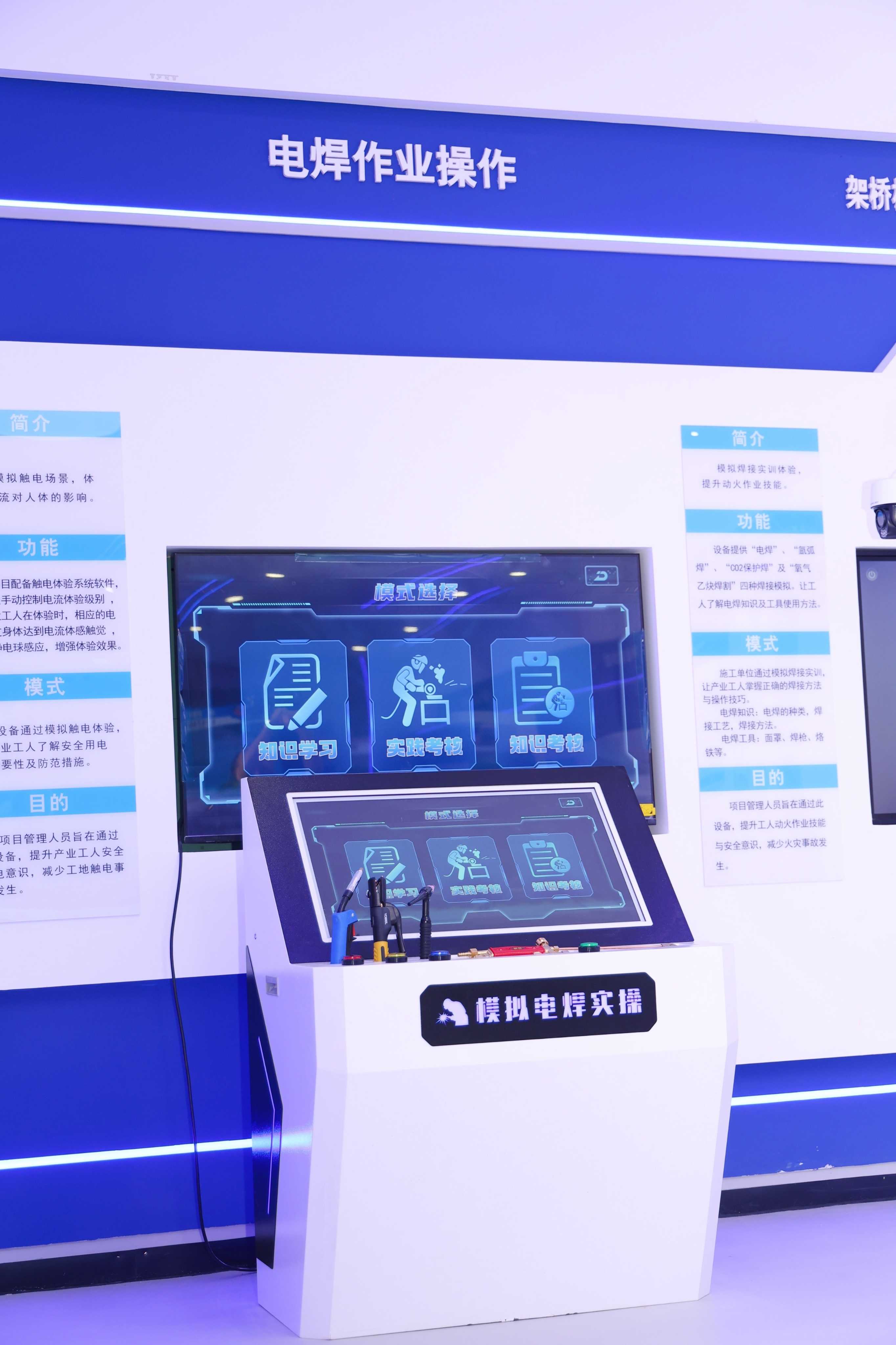 走進(jìn)智慧館,兼具科技感與實(shí)用性的場景令人印象深刻:線上管理平臺實(shí)時滾動著工人培訓(xùn)記錄,線下移動終端可在施工現(xiàn)場隨時開展“微課堂”;在VR虛擬體驗(yàn)區(qū),工人戴上設(shè)備就能“親歷”高空墜落、機(jī)械碰撞等高危場景,在痛感與震感中強(qiáng)化安全意識;在綜合用電體驗(yàn)區(qū),真實(shí)電流通過模擬裝置產(chǎn)生的酥麻感,讓安全用電從理論變成了切身體會。