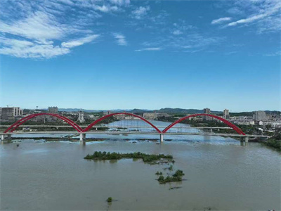 據(jù)了解,水都二橋是連接丹江口市新老城區(qū)的核心交通樞紐工程,橫跨于丹江口城區(qū)漢江左右岸,大橋全長1343米,主橋?qū)?4.3m,引橋?qū)?9m,雙向四車道+兩個非機動車道+兩個人行道,是國內(nèi)最長的三跨連續(xù)鋼箱系桿拱橋。大橋造型似長虹臥波,結(jié)構(gòu)新穎,項目地處漢江庫區(qū)核心區(qū)域,緊鄰丹江口水庫,不僅承擔(dān)著緩解城區(qū)跨江交通壓力的重任,更因地處南水北調(diào)核心保護(hù)區(qū),對施工的生態(tài)環(huán)保要求、安全管控標(biāo)準(zhǔn)遠(yuǎn)超常規(guī)橋梁工程。自開工建設(shè)以來,該橋便被列為十堰市重點民生工程、交通攻堅工程,其建設(shè)進(jìn)度與工程品質(zhì)一直備受社會各界關(guān)注。